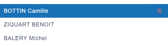 Dans notre exemple, la première de la liste est envoyée à une personne qui n’est pas encore connue dans BDKapp. On peut facilement la repérer grâce au symbole présent à droite de son nom.